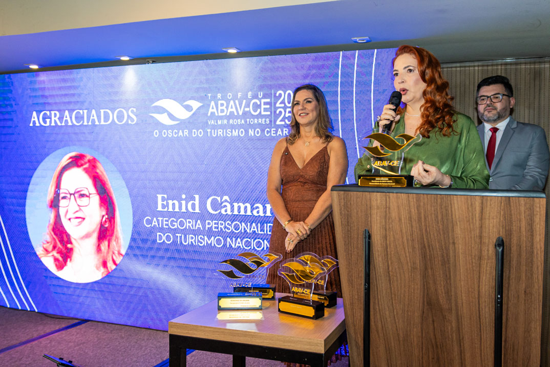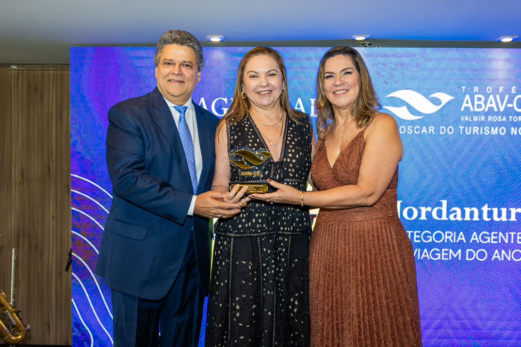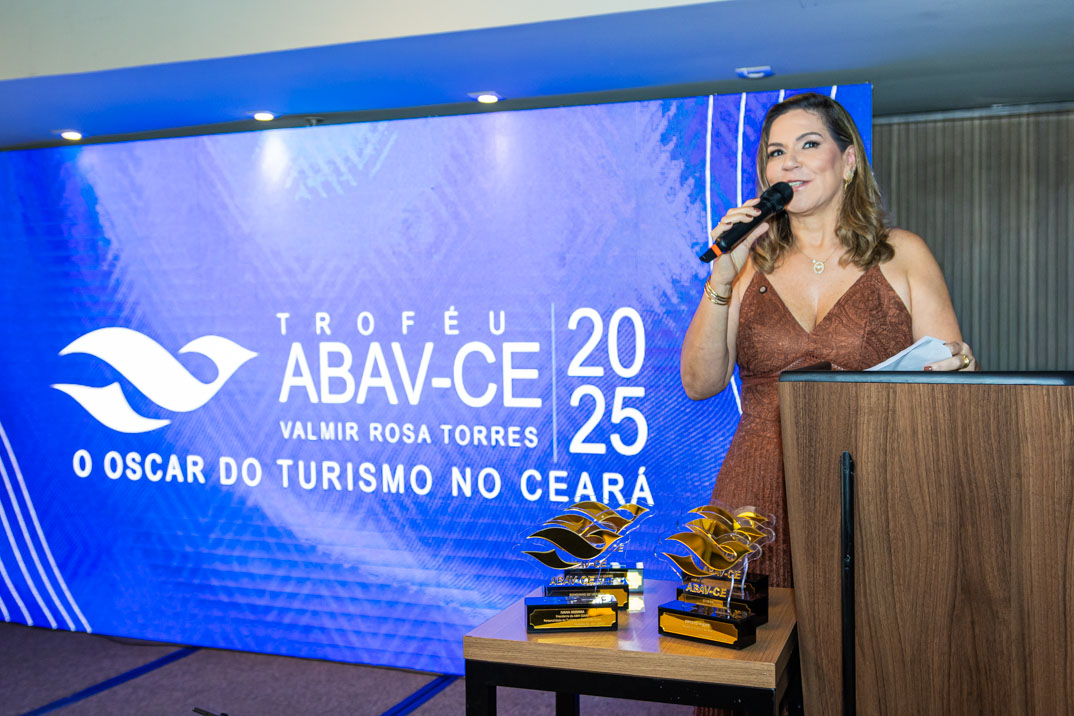 A Associação Brasileira de Agências de Viagens do Ceará (ABAV) realizou, nesta quarta-feira (10), uma premiação de reconhecimento a executivos e executivas do mercado, com a entrega do Troféu ABAV Ceará Valmir Rosa Torres – edição 2025. O troféu recebe o nome de um importante ex-presidente da ABAV Ceará, que esteve à frente da entidade por dois períodos: entre os anos de 1981 e 1983, e de 1997 a 2001. Não à toa, a premiação é reconhecida por lideranças empresariais e políticas. Pois é uma das distinções mais respeitadas do turismo regional, homenageando profissionais, instituições e iniciativas que contribuem de forma decisiva para o crescimento, a inovação e o aprimoramento do turismo no Ceará e no Brasil, celebrando trajetórias, valorizando talentos e reforçando o compromisso de todos os agraciados com a excelência no setor. Confira!