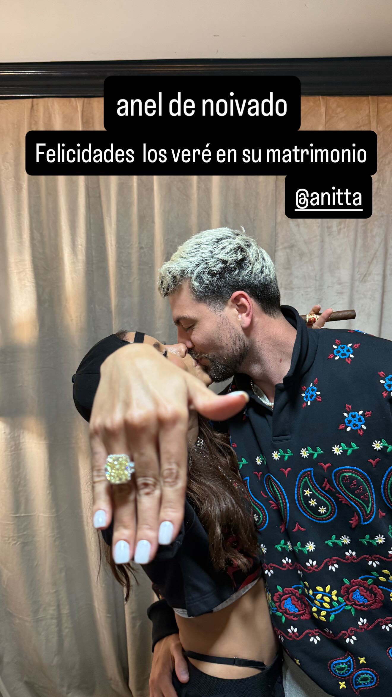 J Balvin agitou os fãs de Anitta neste sábado, 9, ao publicar, nos stories do Instagram, imagens que insinuavam um possível noivado da cantora com o namorado, Ian Bortolanza. Nas fotos, Anitta aparece usando um anel brilhante e trocando beijos com o companheiro. O colombiano ainda escreveu: “Felicidades, vejo vocês no casamento”, alimentando especulações nas redes sociais. No entanto, em uma imagem seguinte, o mesmo anel surgiu no dedo do próprio J Balvin, indicando que tudo não passava de uma brincadeira entre os amigos. Até o momento, nem Anitta nem Ian comentaram a postagem.