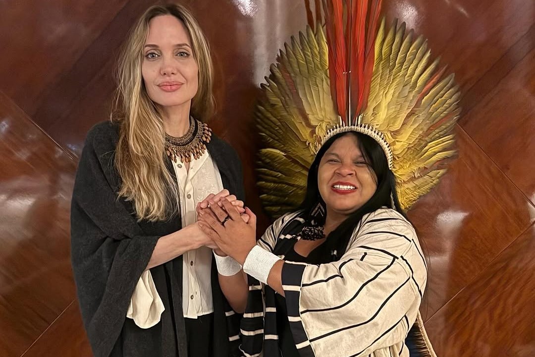 Após visitar uma aldeia indígena no Xingu, em Mato Grosso, nessa quinta-feira, 3, a atriz e ativista Angelina Jolie se encontrou com a ministra dos Povos Indígenas, Sonia Guajajara. A reunião foi divulgada pela própria ministra nas redes sociais nesta sexta-feira, 4. “Ontem conheci a atriz e aliada da luta pelo meio ambiente e direitos humanos, @angelinajolie. Falamos sobre o papel que o mundo pode cumprir no apoio aos povos indígenas brasileiros, a importância da defesa dos territórios demarcados e apresentei algumas iniciativas do poder público brasileiro, como os Planos de Gestão Territorial e Ambiental (PGTAs)”, escreveu Guajajara.