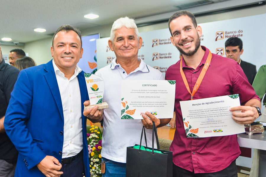Os microempreendedores do Ceará que conduzem seus negócios na cidade ou no campo e transformam a realidade de suas famílias e comunidades foram reconhecidos pelo Banco do Nordeste (BNB), em cerimônia nesta terça-feira (14) com as presenças do presidente da instituição, Paulo Câmara, e da superintendente estadual, Eliane Brasil. O XVI Prêmio de Microfinanças e o VIII Prêmio da Agricultura Familiar foram entregues aos agraciados no auditório Cláudio Ferreira Lima, na sede do Banco.