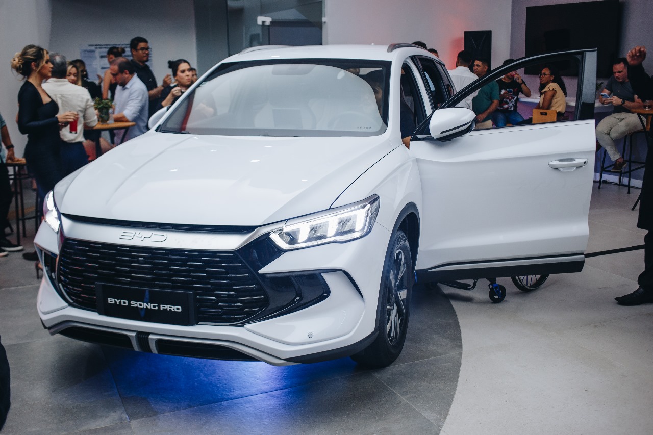 Além do lançamento oficial da loja, o momento contou com a presença do novo modelo da BYD Song Pro, anunciado no último domingo (7). O Song Pro está chegando ao mercado brasileiro em duas variantes: DM-i 1.5L FWD com autonomia de 71 km (L7) e DM-i 1.5L FWD com autonomia de 110 km (L7), equipadas com bateria de até 18,3 kWh.