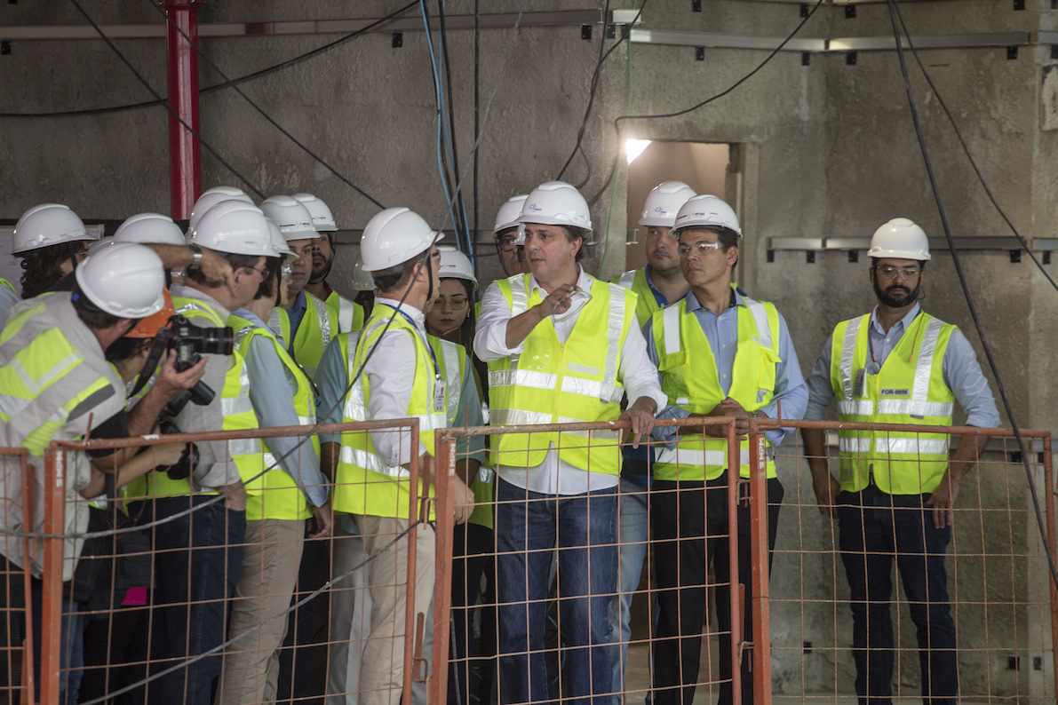 As obras de ampliação e modernização do Aeroporto Internacional Pinto Martins (Fortaleza Airport), em Fortaleza já estão com 60% de suas intervenções concluídas. Iniciada há cerca de um ano, a obra vai ampliar de sete para 15 pontes de embarque e desembarque. O governador Camilo Santana (PT) – ao lado do prefeito do Fortaleza, Roberto Cláudio (PDT); da presidente da Fraport Brasil, Andreea Pal; dos secretários Arialdo Pinho (Turismo) e Lucio Gomes (Infraestrutura) – visitou o equipamento na manhã desta quarta-feira (10).