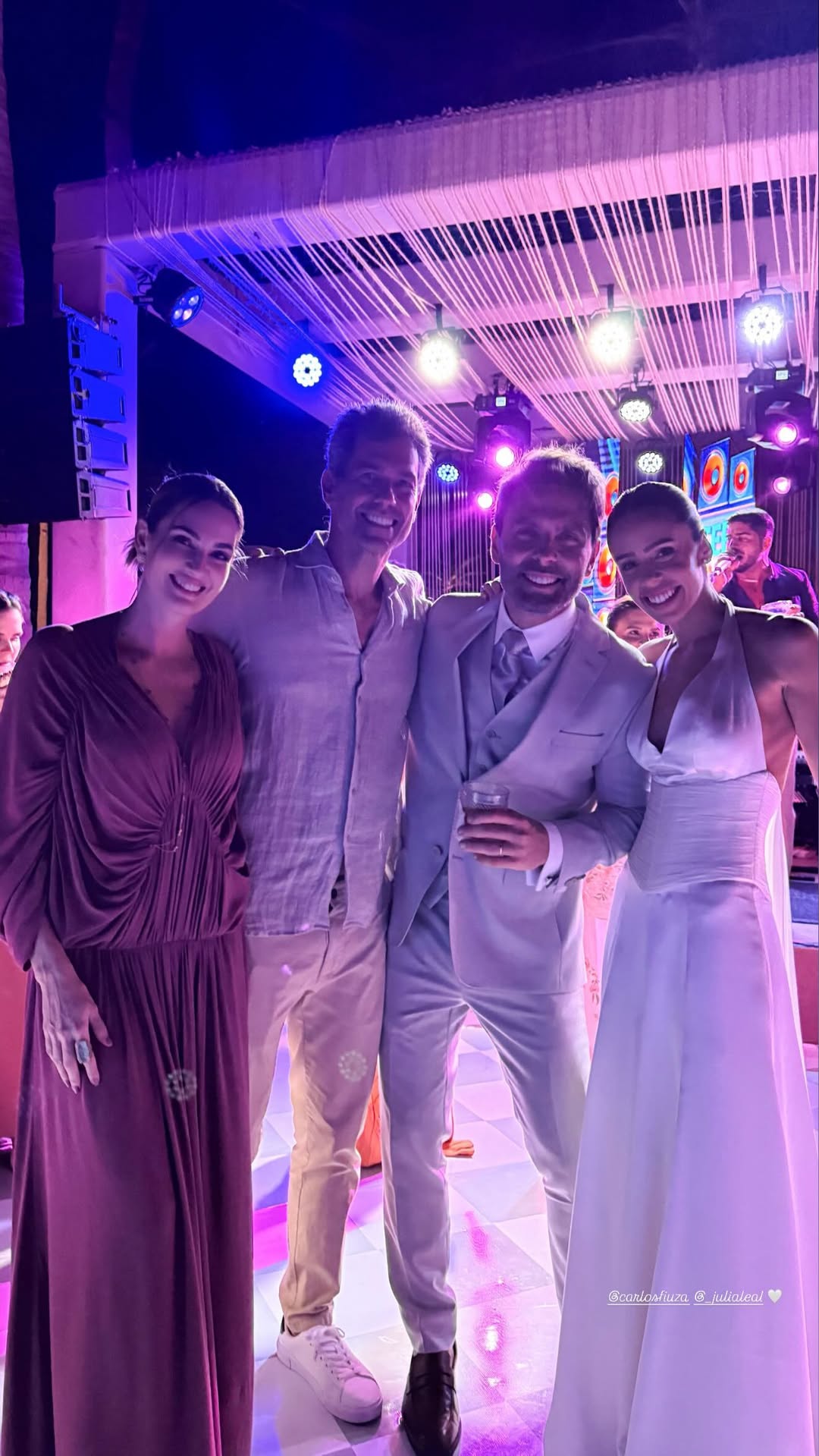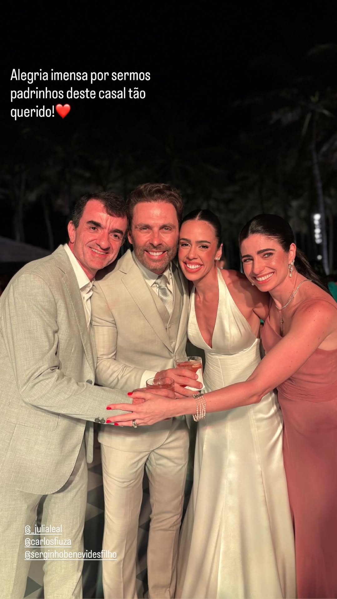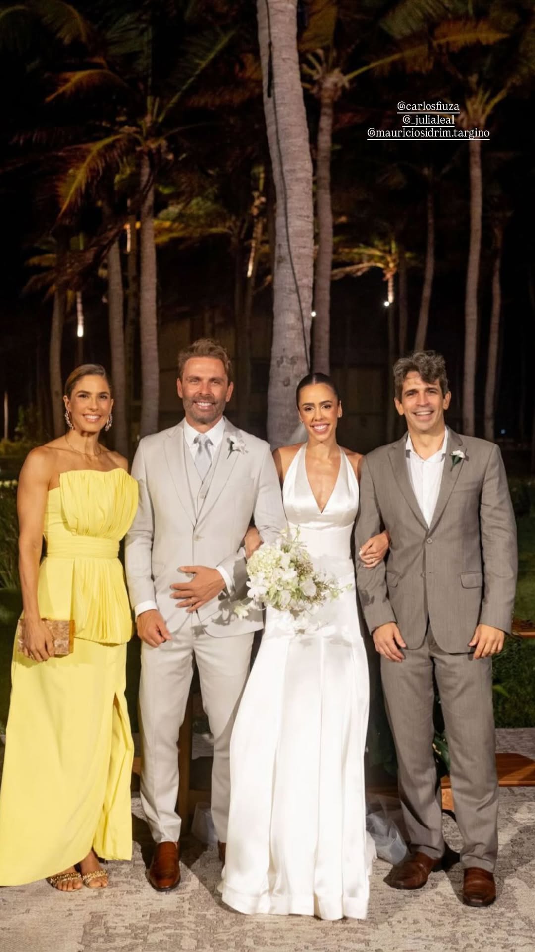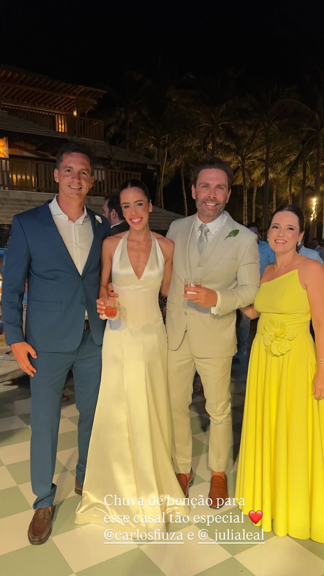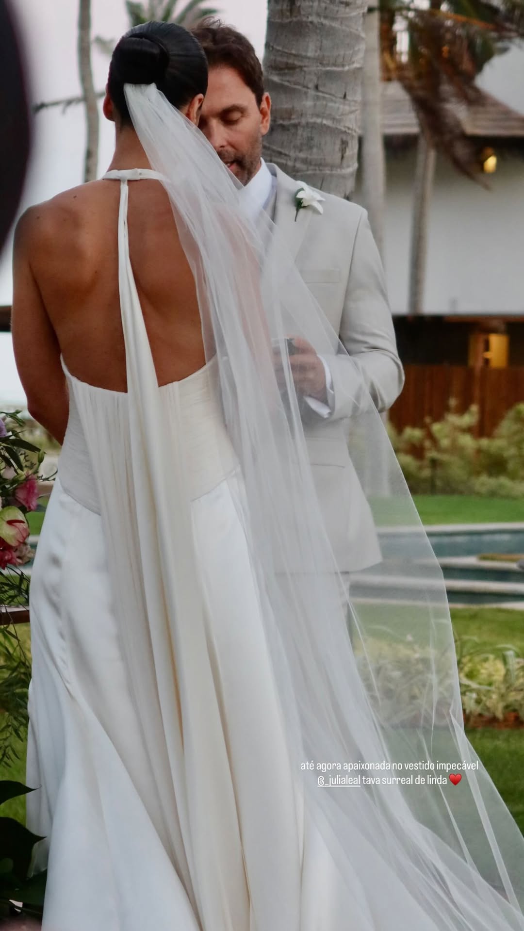 Júlia Leal e Carlos Fiuza celebraram união em uma cerimônia ao ar livre repleta de elegância e romantismo, realizada no Fortim. O casamento, à beira-mar e em meio a palmeiras, teve como cenário o pôr do sol e o brilho das luzes, que tornaram o momento ainda mais encantador. A noiva deslumbrou com um vestido de cetim branco com decote halter e cauda fluida, exalando leveza e sofisticação. O noivo, por sua vez, escolheu um terno em tom claro, em perfeita sintonia com o clima praiano e o estilo da celebração.