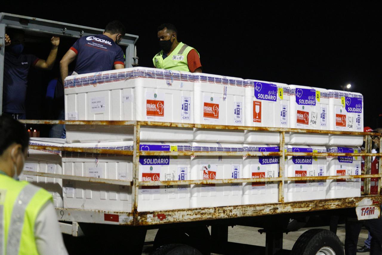 O Ceará recebe na tarde desta quinta-feira (29), às 15h30 mais um lote de vacinas contra covid-19 enviado pelo Ministério da Saúde, segundo o governador Camilo Santana (PT). Ele deu a notícia em uma rede social na noite desta quarta-feira (28).