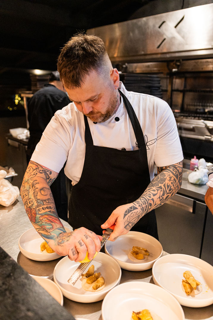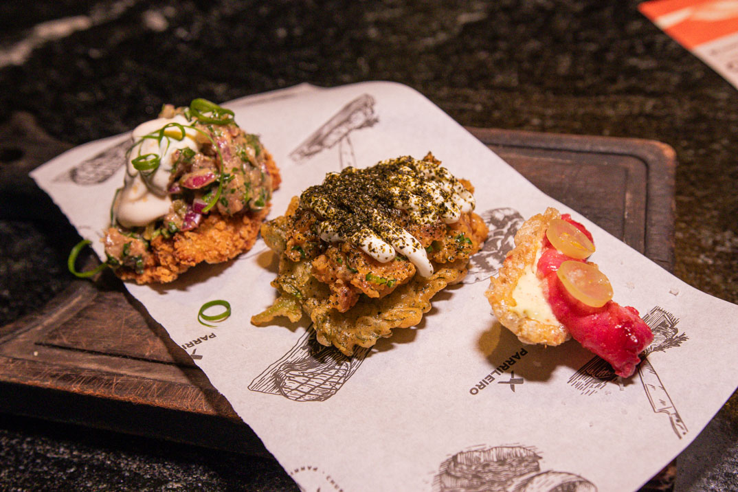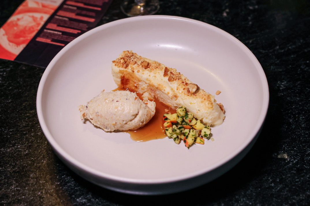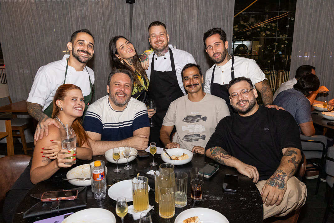 O jantar apresentou um menu em quatro etapas que evidencia a cozinha dos chefs convidados por meio de ingredientes do mar trabalhados com técnicas de maturação, defumação e preparos frescos. As harmonizações ficaram por conta da coquetelaria autoral de Alan Souza, mixologista do Parrileiro; os drinks apostam em frutas frescas, acidez suave e aromas delicados, buscando realçar a leveza dos ingredientes do mar e acompanhar o frescor dos pratos. Confira!