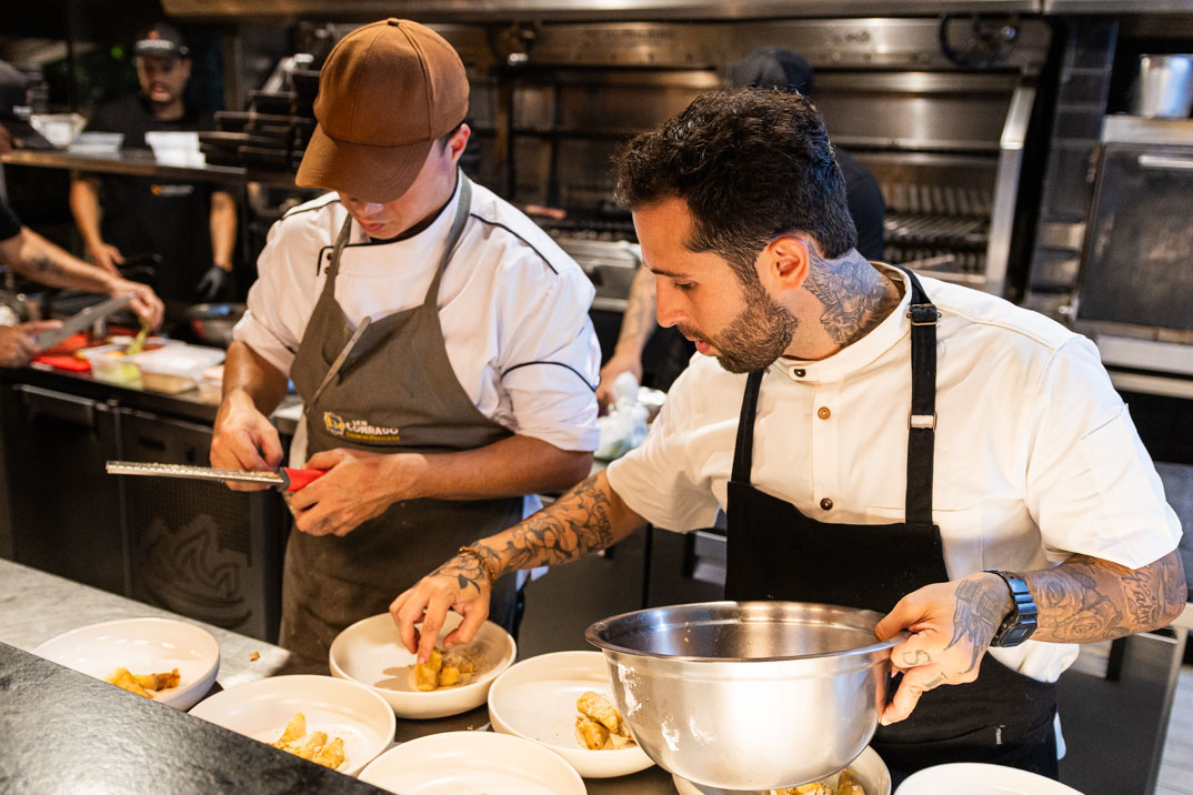 O Parrileiro realizou, nesta terça-feira (25), no Parrileiro Aldeota, a quarta edição do Chef Ralfo Chama, projeto que transforma o restaurante em palco de experiências gastronômicas intimistas e colaborativas. Para encerrar o ano, o anfitrião Chef Ralfo Ifanger recebeu os chefs Diego Freire e Pepê, que comandam o Muvuco — casa reconhecida por valorizar os sabores do mar — para uma noite marcada por técnica, troca e criatividade ao redor da brasa.