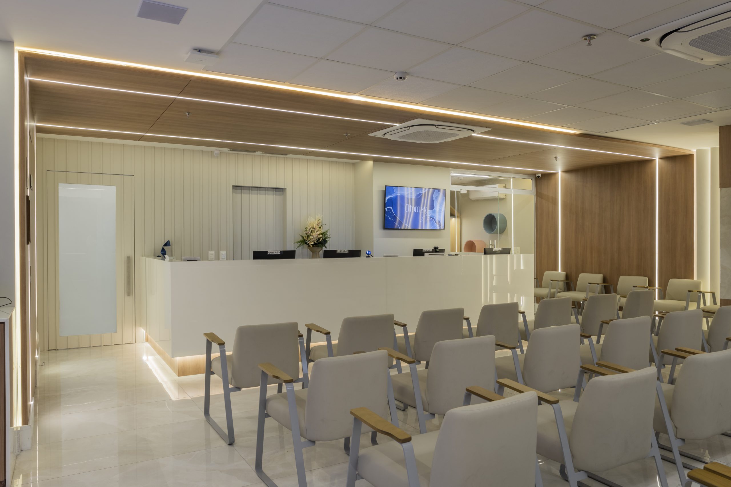 Já havíamos projetado a primeira clínica OTOMAX que se localizava no RioMar Trade Center. Com a necessidade de expansão, o grupo de médicos resolveu “descer” e se instalar no próprio shopping, facilitando o acesso.