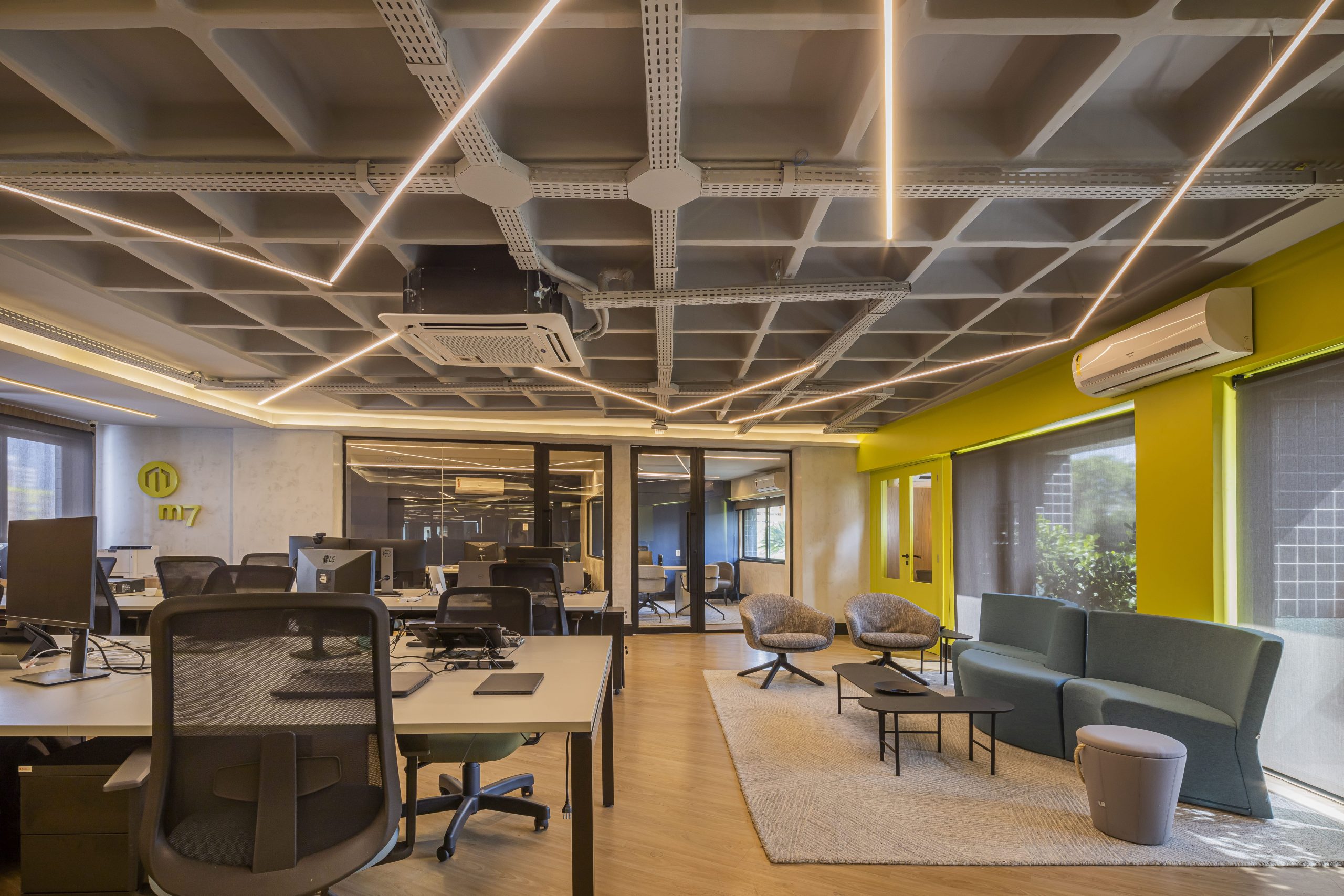 Tecnologia, inteligência e organização é o que transparece no novo escritório da M7 Investiments, planejado pela arquiteta Ana Fiuza com soluções DESCO.