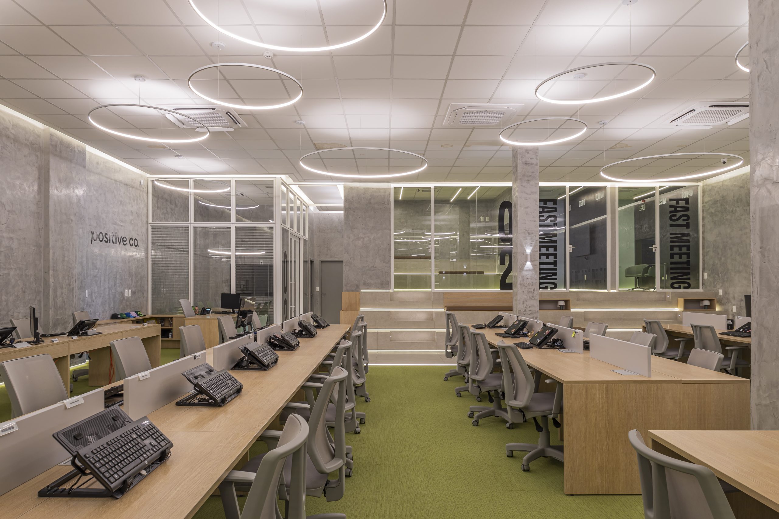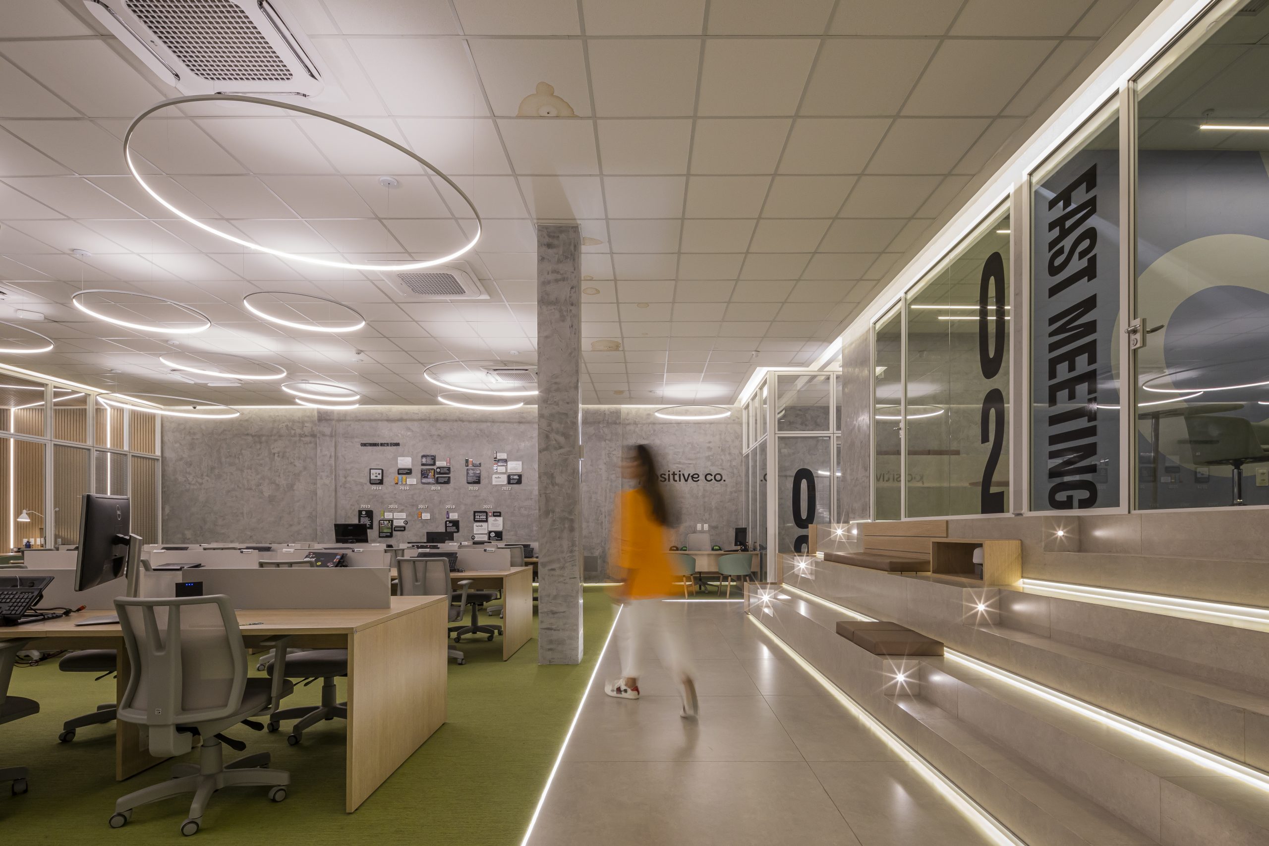 Para o projeto, Marcela apostou em um conceito de empresa integrada, com espaços de descompressão dentro do setor técnico, áreas para talk formal e informal. A seriedade padrão de empresas, deu espaço ao conceito moderno e leve, fazendo com que os funcionários se sintam mais conectados com o ambiente de trabalho, melhorando assim o desempenho de toda a organização.