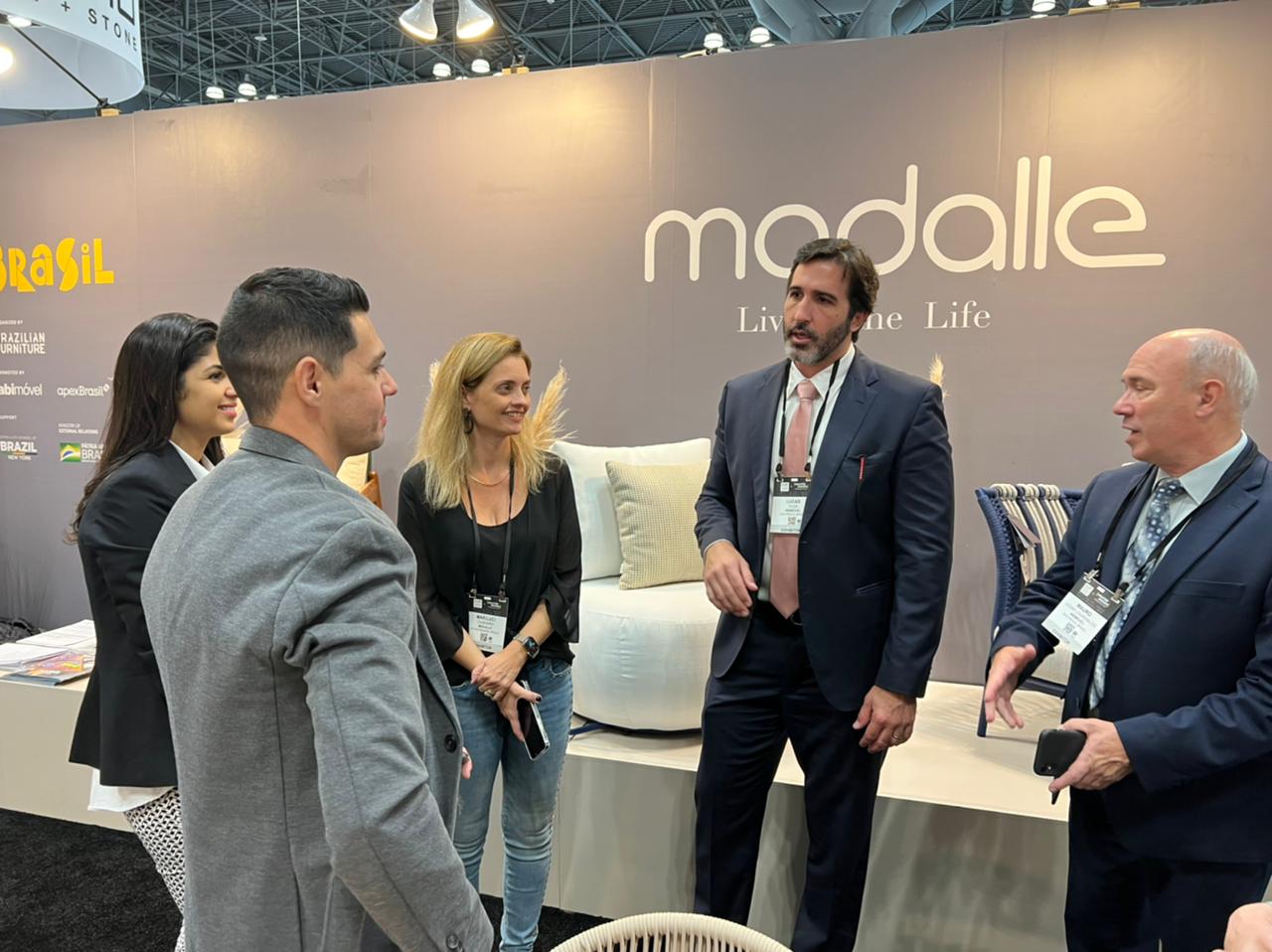 Apoiadas pela Apex-Brasil, juntamente com a Abimóvel, sete empresas brasileiras participaram da ICFF 2022. Um dos destaques foi a marca brasileira Modalle, que ganhou o prêmio de melhor design para móveis externos da feira.