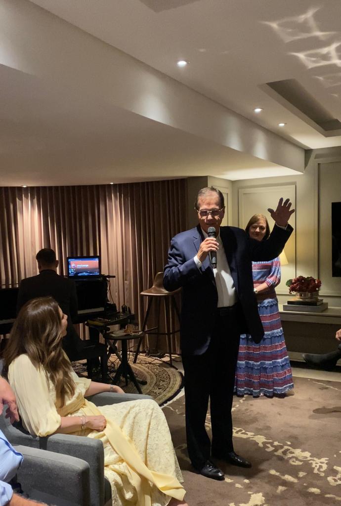 A noite contou, ainda, com especial surpresa antecipada da anfitriã aos seus amigos Beto Studart e Deusmar Queirós, que aniversariam em maio. O menu da noite, assinado pela Chef Liliane Pereira, contou com uma viagem pelas delícias do Nordeste, sem esquecer a essência de sua cozinha contemporânea e criativa. Fernando Martins grifou os arranjos naturais e Darlington Mesquita interpretou clássicos da MPB ao piano, inclusive acompanhando Beto Studart, que deu presenteou a todos com um clássico de Lamartine Babo.