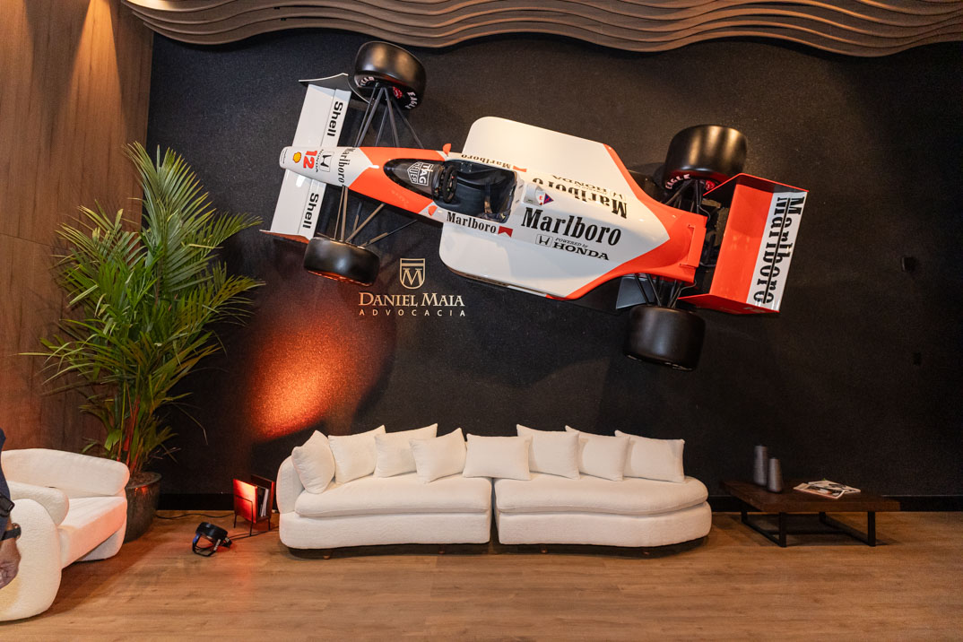 O advogado Daniel Maia celebrou, nesta quarta-feira (5), a inauguração da nova sede de seu escritório em um evento especial no Piaza Aldeota, empreendimento que chega a Fortaleza com a proposta de transformar o cenário corporativo da capital cearense. O espaço marca uma nova etapa para o escritório, que se consolida em um ambiente moderno, sofisticado e pensado para o futuro dos negócios. O projeto arquitetônico, assinado por Rafael Magalhães, contempla uma área total de 2.230 m². Entre os atrativos que já chamam atenção, destaca-se uma réplica em tamanho real de um carro de Fórmula 1 inspirado na McLaren, equipe que consagrou Ayrton Senna como tricampeão mundial.