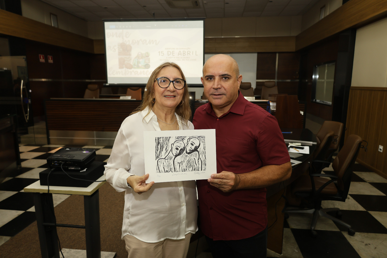 O Tribunal de Contas do Estado do Ceará abriu, nesta terça-feira (15), a exposição “Onde moram as lembranças”, da artista Jacinta Cavalcante, em integração com as celebrações do Dia Mundial da Arte. Com curadoria de Andréa Dall’Olio, a mostra apresenta, até o dia 15 de maio no Espaço Cultural, cerca de 30 obras, entre pinturas, gravuras e esculturas em cerâmica, incluindo trabalhos inéditos que percorrem diferentes fases da trajetória da artista. A exposição propõe uma imersão sensível no universo das lembranças. Estiveram presentes o presidente do TCE-CE, Rholden Queiroz, e diversas personalidades da instituição e das artes cearenses.
