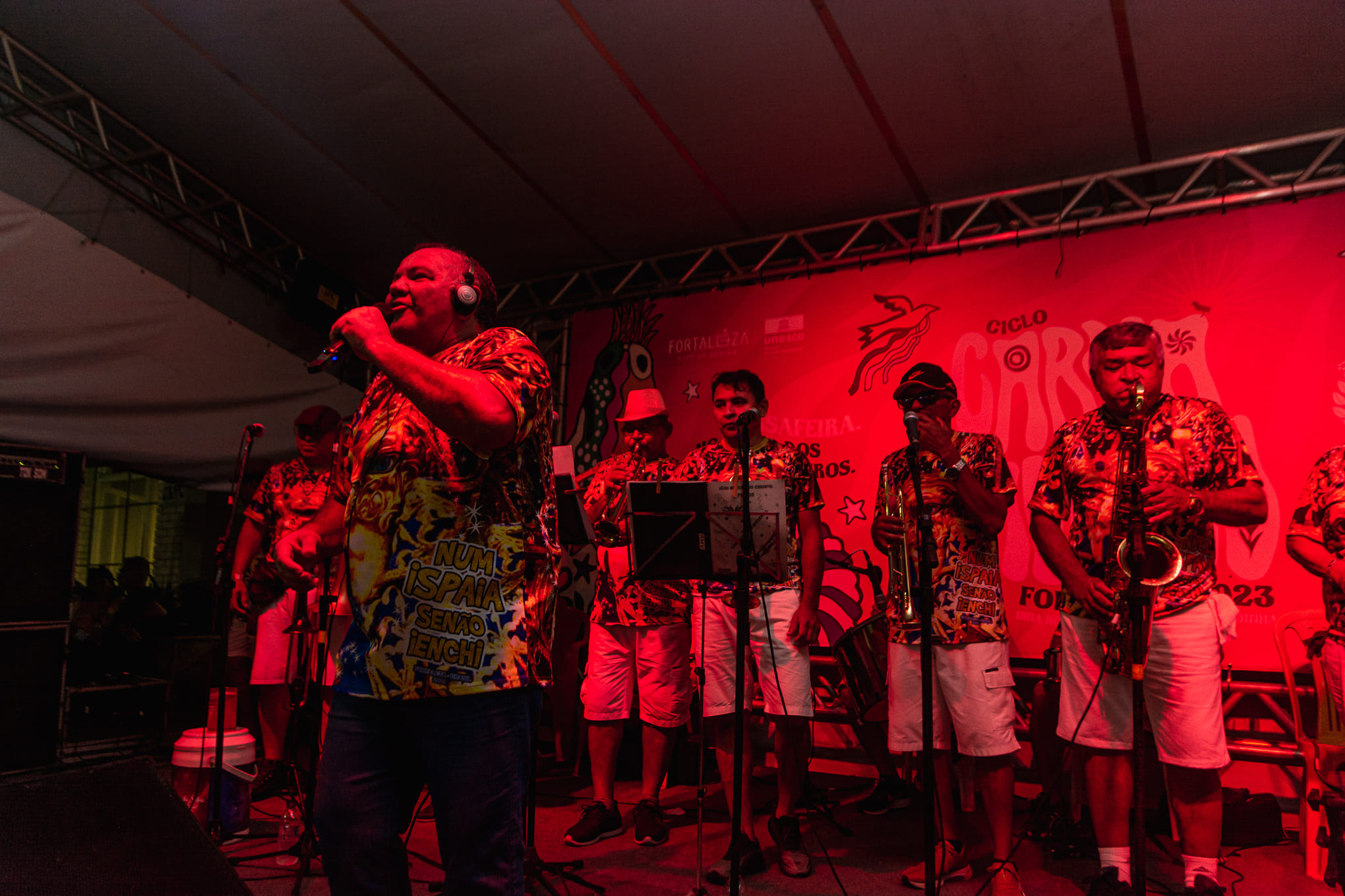 As apresentações começaram cedo na rua Padre Climério: às 16h30. Foi Cris Malagueta quem fez os foliões sambarem à frente de uma estrutura montada na rua estreita. Mas foi às 18h30 em ponto que o bloco ‘Num Ispaia Sinão Ienche’ realmente encheu as ruas circunvizinhas, cantando até Reginaldo Rossi em meio a sucessos do brega e da Jovem Guarda.