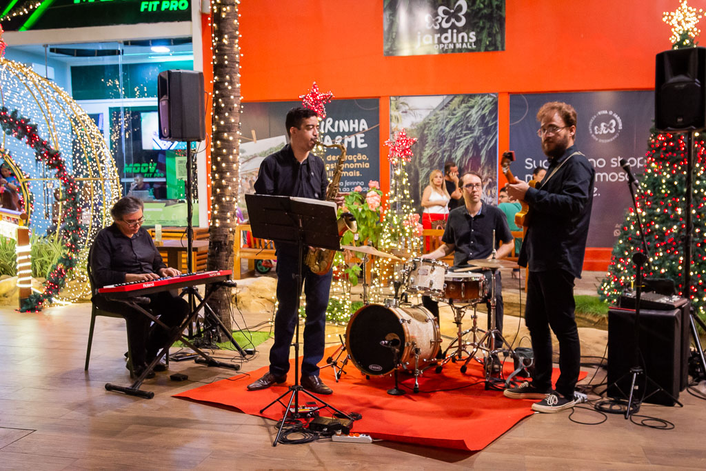 O Jardins Open Mall celebrou, na noite desta quarta-feira (6), a chegada do Papai Noel. O bom velhinho desembarcou no shopping e foi recebido com uma série de atrações, como apresentação de jazz natalino, intervenções culturais com personagens e show de mágica. Os convidados especiais da ocasião foram recepcionados no tradicional restaurante Geppos Italiano.