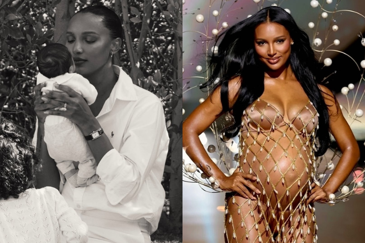 Jasmine Tookes, que desfilou grávida no Victoria’s Secret Fashion Show, apresenta o filho recém-nascido nas redes
