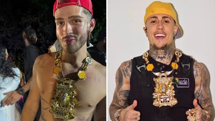 João Guilherme foi um dos destaques do carnaval baiano na noite desta sexta-feira (9), quando curtiu a folia no trio elétrico do Bloco da Anitta, após marcar presença também no Camarote Salvador. O ator chamou atenção ao surgir usando um colar do funkeiro MC Daniel, avaliado em R$ 1 milhão