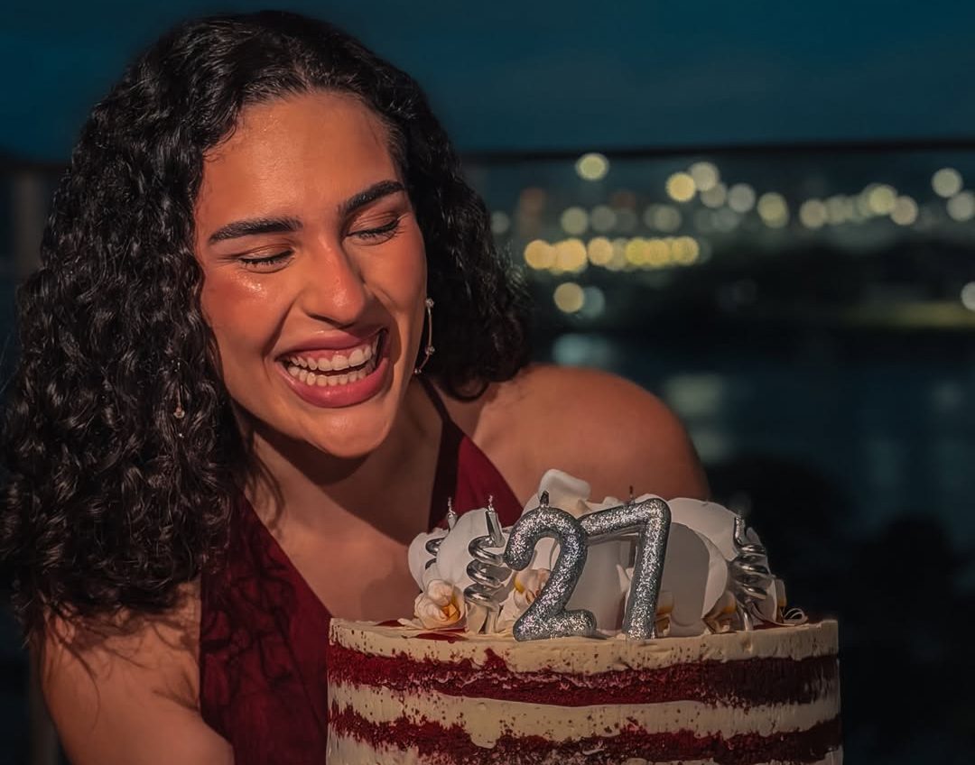 A atriz Lívian Aragão iniciou a semana em clima de festa. Nesta segunda-feira, 23, a artista usou suas redes sociais para compartilhar os registros de seu aniversário de 27 anos, celebrado em solo carioca. Para a ocasião especial, a filha caçula de Renato Aragão e Lílian Taranto elegeu um vestido vinho longo, com decote em “V” e detalhes em transparência, unindo modernidade e sofisticação. Em uma das imagens, Lívian aparece radiante ao segurar um bolo red velvet personalizado, decorado com velas de brilho cinza, simbolizando a alegria de completar mais um ano de vida rodeada de carinho.