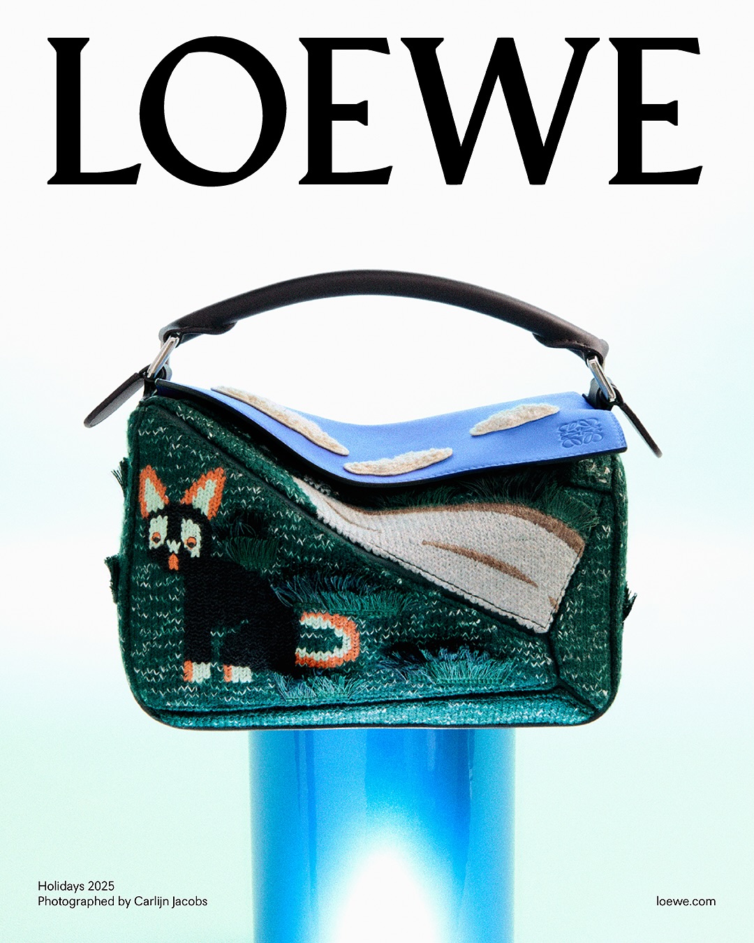 Ícones da marca, como as bolsas Puzzle, Flamenco e Amazona, retornam em versões reinventadas com detalhes felinos, enquanto novas peças — entre elas a clutch Futurist Cat e a bolsa Joya — acrescentam um espírito arquitetônico e lúdico ao repertório da LOEWE. No prêt-à-porter, jaquetas em couro napa, tricôs artesanais e calçados de silhuetas esculturais reafirmam o compromisso da grife com inovação estética e narrativa.