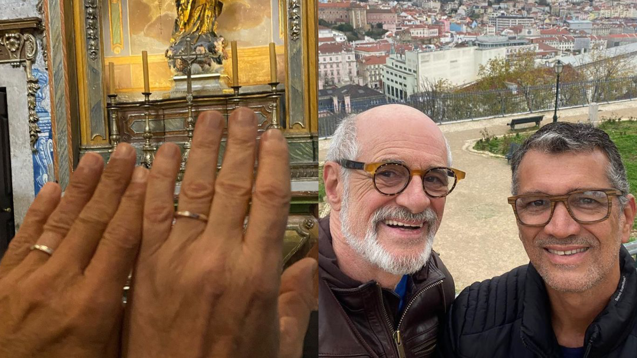 “Estivemos em Lisboa para assistirmos ao sucesso que minha peça está fazendo por lá (lotado até 20 de janeiro) e postamos as mãos para o alto, com anéis comprados numa feirinha no Bairro Alto, e já acontece a repercussão de que houve casamento”, esclareceu.