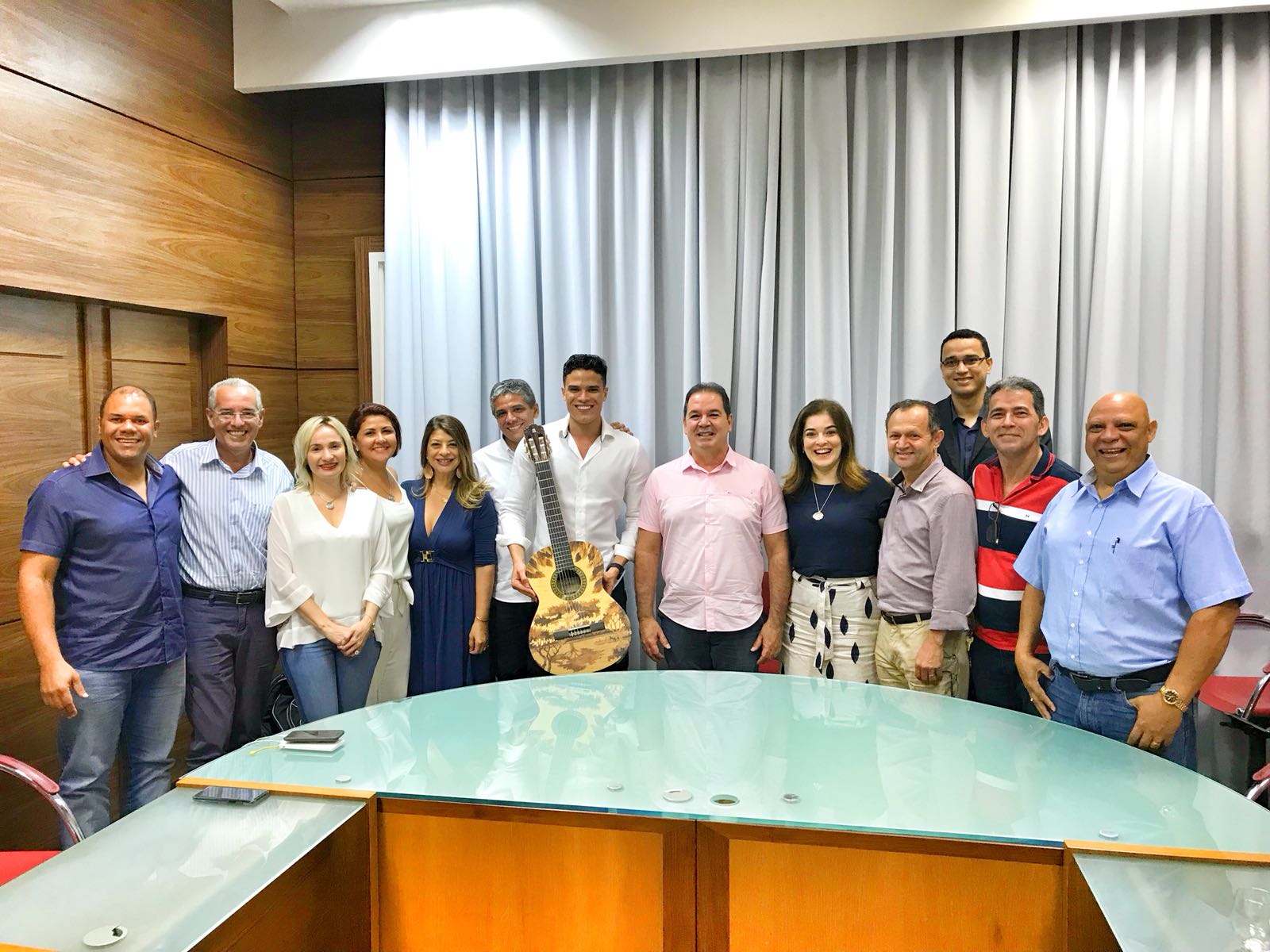 Durante sessão solene, em homenagem ao Dia da Cultura Ayuasqueira, o cantor e compositor cearense, Marcos Lessa, foi agraciado com o título de Cidadão Acreano. A solenidade, realizada no plenário da Assembleia Legislativa do Estado do Acre, contou com a presença ilustre da mesa diretora da casa e demais representante do movimento ambiental no Estado. No mesmo dia, no período da tarde, foi à vez de receber a Ordem da Estrela do Acre, em solenidade no Teatro Plácido de Castro. Defensor da Floresta Amazônica e apaixonado pelas terras acreanas, a relação de Lessa com o sudoeste iniciou-se em 2015 e resultou em um projeto batizado de MOA, com mais de 14 canções em homenagem ao Estado – uma delas trilha sonora da teledramaturgia global, A Força do Querer. Lessa vem ganhando destaque nacional, com interpretações de artistas consagrados e projetos autorais. Em 2018, comemora 10 anos de carreira. Na foto, o cearense junto com o governador acreano, Tião Viana, e sua vice-governadora, Nazareth Araújo, juntamente com todo o secretariado estadual compondo o registro.