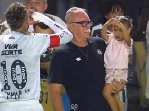 Durante a partida entre Santos e Mirassol, na quarta-feira, 19, a pequena Mavie, filha de Neymar Jr., encantou o público ao mandar um coraçãozinho para o pai, em gesto de apoio durante o jogo. O atacante retribuiu imediatamente, protagonizando um momento carinhoso que ganhou destaque nas redes sociais. Em outro registro da noite, Mavie apareceu no camarote ao lado da mãe, Bruna Biancardi, e repetiu o famoso gesto do pai com a língua para fora, arrancando ainda mais elogios da web.