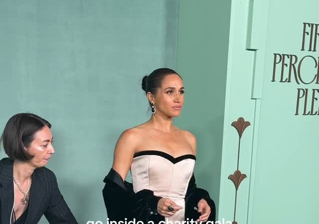A Duquesa de Sussex, Meghan Markle, foi o centro das atenções no baile de gala anual da Fifteen Percent Pledge, em Los Angeles. Exibindo um visual que equilibra sofisticação e drama, Meghan elegeu um longo sem alças em tom de ostra da Harbison Studio. O modelo, com decote coração e detalhes em viés preto, foi complementado por um luxuoso xale de veludo e seda que criava uma cauda imponente na passarela do evento. A produção, finalizada com joias de diamantes, reforçou a estética “quiet luxury” que se tornou marca registrada da duquesa.