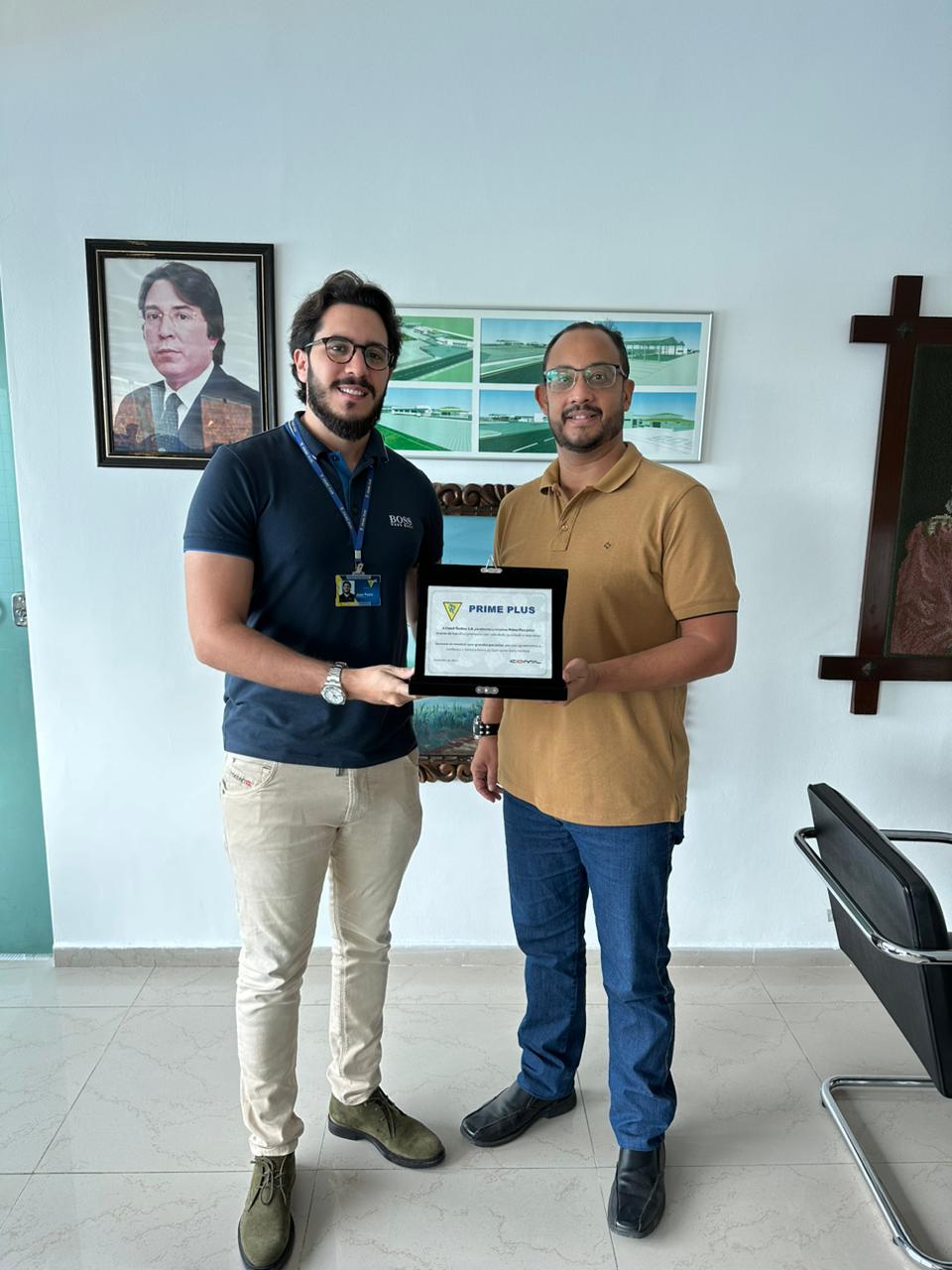 A homenagem foi entregue em mãos por Alberto Nunes, diretor da fábrica de ônibus com sede no Rio Grande do Sul. Quem recebeu foi o CEO João Pedro Brandão, que está à frente da empresa desde o ano passado.