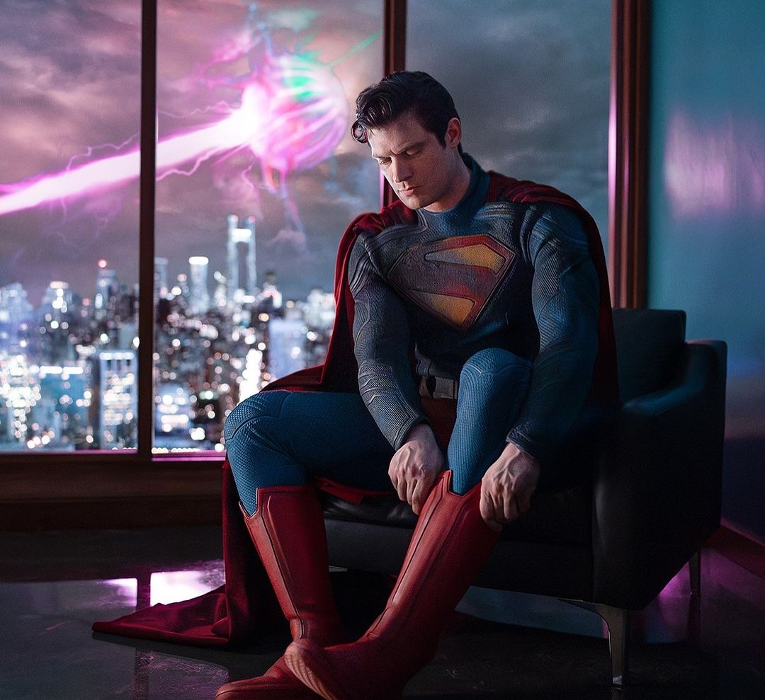 O negócio está tomando forma! O cineasta James Gunn divulgou nesta segunda-feira, 6, a primeira imagem oficial do ator David Corenswet como o novo Superman dos cinemas. Na imagem, ele aparece sentado e calçando sua bota.