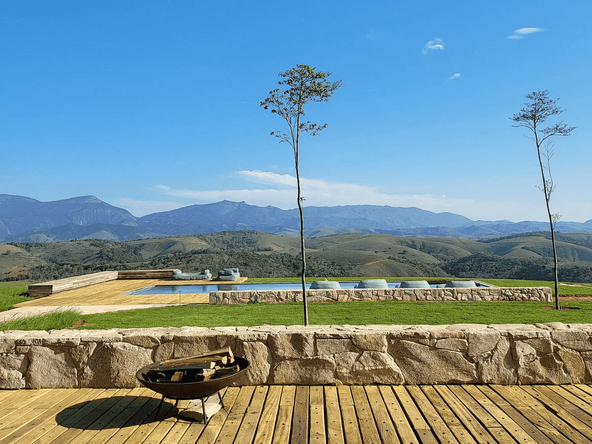 O Rancho da Montanha está disponível pra aluguel por temporada, com diárias a partir de R$ 20 mil. O local tem projeto com assinaturas de Duda Porto Arquitetura e design de interiores da Hana Lener. Destacam-se os móveis planejados assinados por Oscar Niemeyer, Lúcio Costa, Sergio Rodrigues e Carlos Mota.