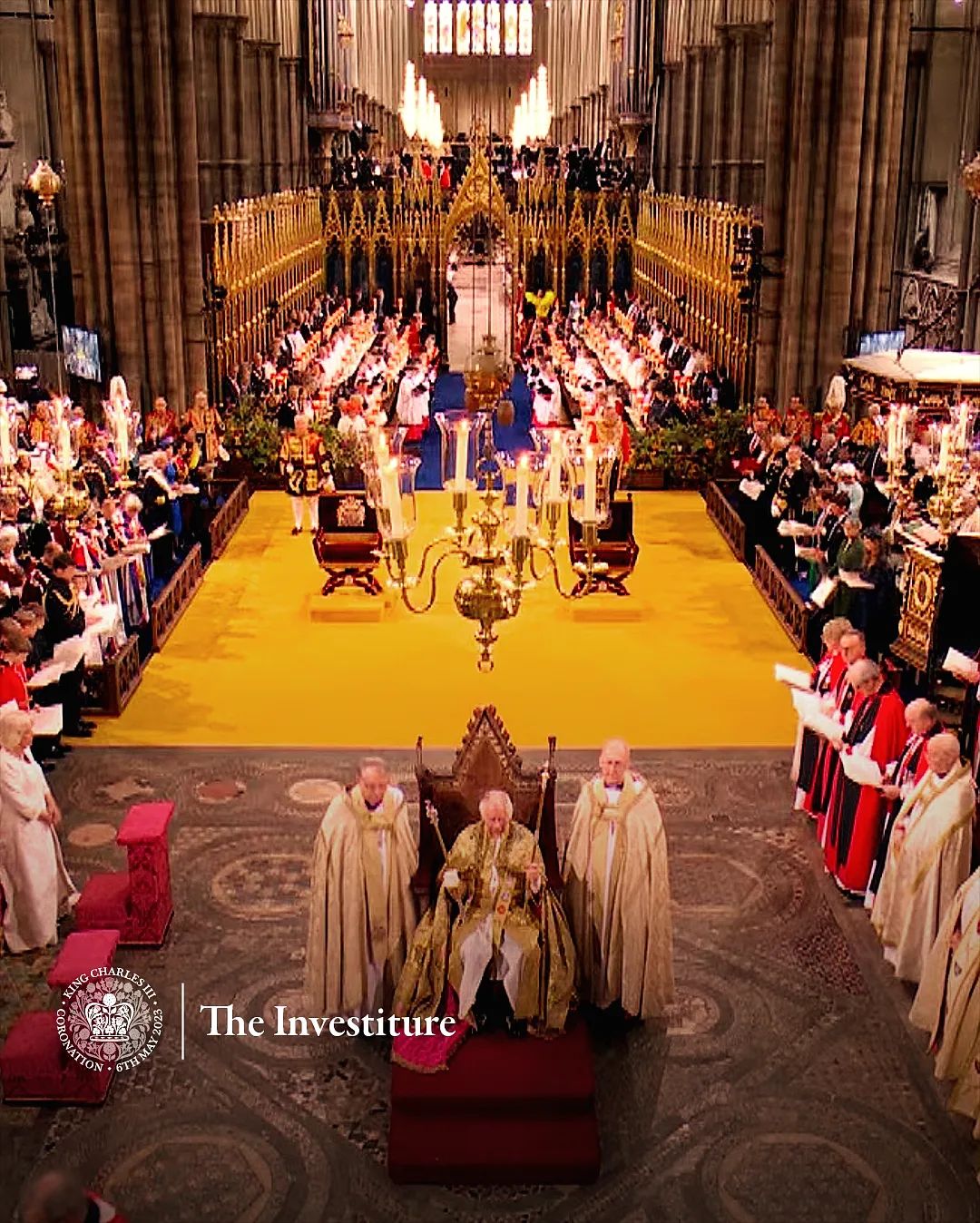 Charles foi recebido na Abadia de Westminster por Samuel Strachan. Ele recebeu a coroa de Santo Eduardo durante a cerimônia de coroação na Abadia de Westminster, em Londres. Posteriormente, sentado na Caidera do Estado, Charles realizou o Juramento de Coroação, comprometendo-se a defender a lei e a Igreja da Inglaterra, e o Juramento da Declaração de Adesão, declarando-se um “fiel protestante”.