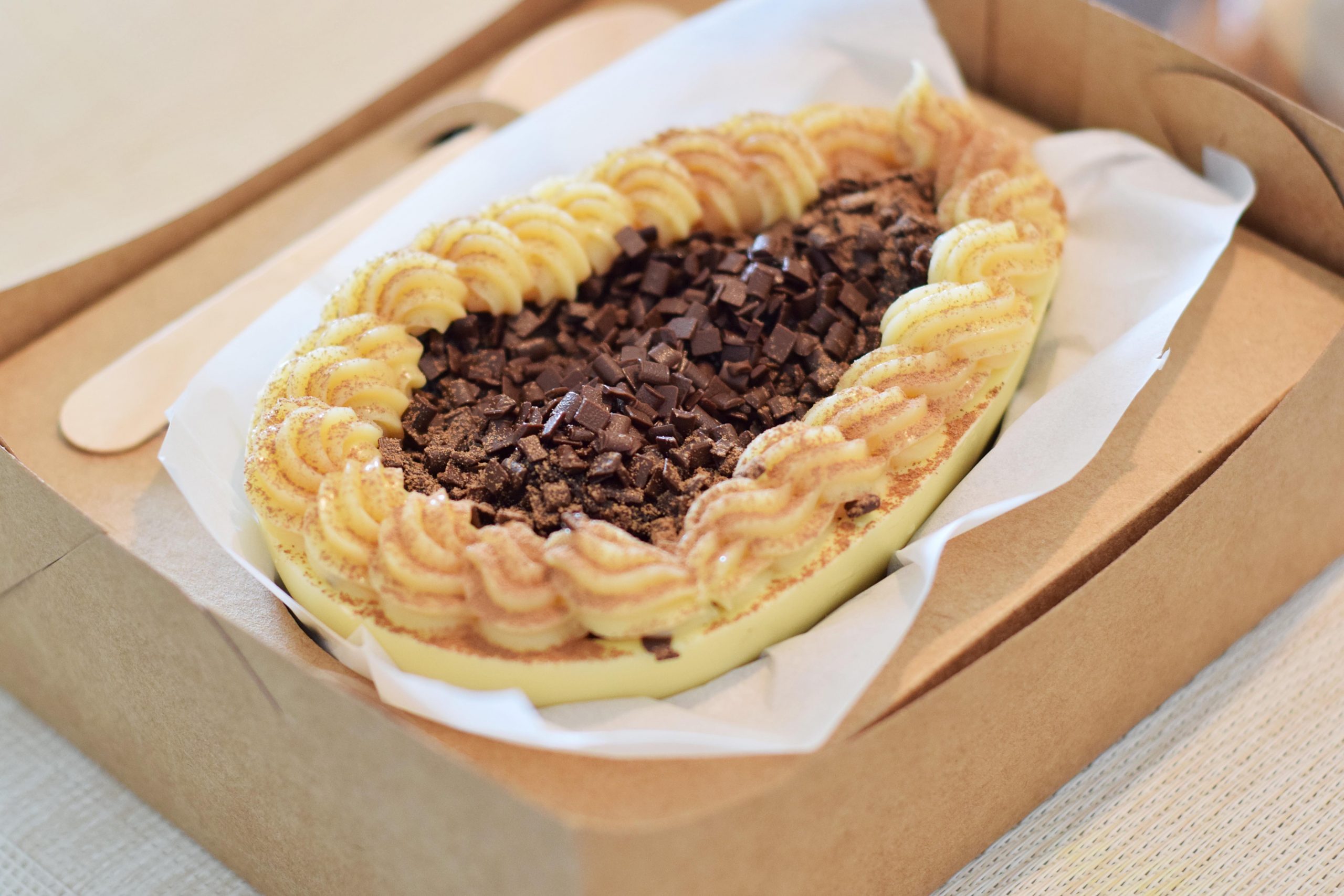 O cliente pode escolher entre chocolate ao leite ou branco para a base e o recheio búlgaro possui a opção tradicional ou de ninho. A sobremesa está disponível por R$119,90 sob encomenda através do número (85) 3244-3691