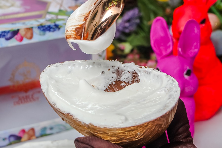 Que inclui os sabores “Profiteroles 2.0” (campeão de vendas e eleito o melhor ovo de Páscoa de Fortaleza por mídia especializada em 2020; o ovo de chocolate belga caramelizado (Callebaut), recheado de brigadeiro cremoso de chocolate 54% e profiteroles recheados de caramelo, banhados com chocolate também caramelizado e flor de sal) e o sabor “Mil Folhas” (casca de chocolate ao leite, recheado com brigadeiro de baunilha e massa folhada caramelizada.