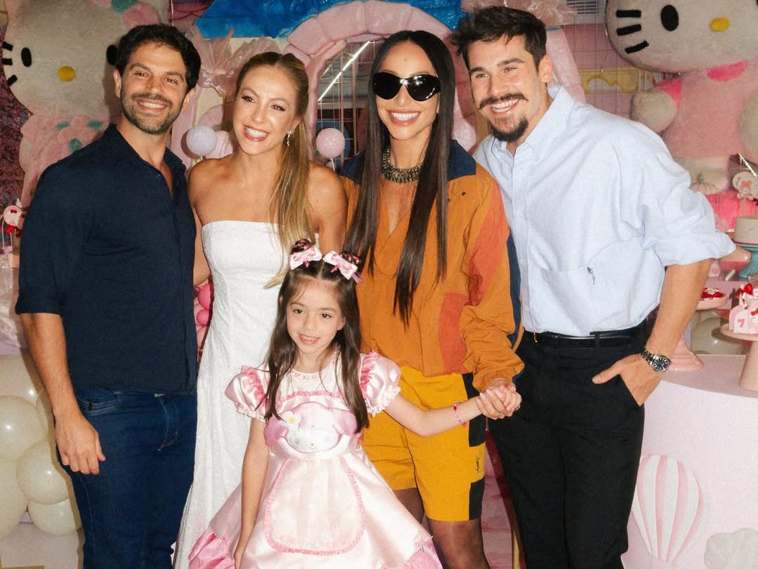 Sabrina Sato e Duda Nagle celebraram, nesta sexta-feira (28), o aniversário de 7 anos da filha, Zoe, em São Paulo. A festa reuniu familiares e amigos e teve como tema a personagem “Hello Kitty”, deixando a pequena visivelmente encantada. Os pais posaram ao lado da aniversariante acompanhados de seus atuais parceiros: Sabrina com Nicolas Prattes e Duda com Mariane Heller. A comemoração teve clima alegre e rendeu registros animados nas redes sociais.