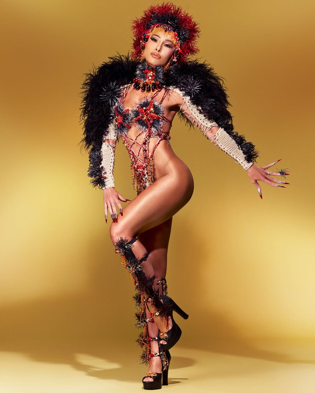 Nas redes sociais, a rainha do carnaval postou: “Yandê, Yandê, vai tremer a terra! Pronta para o primeiro ensaio técnico da nossa Gaviões! A bateria Ritimão está chegando no Anhembi!”