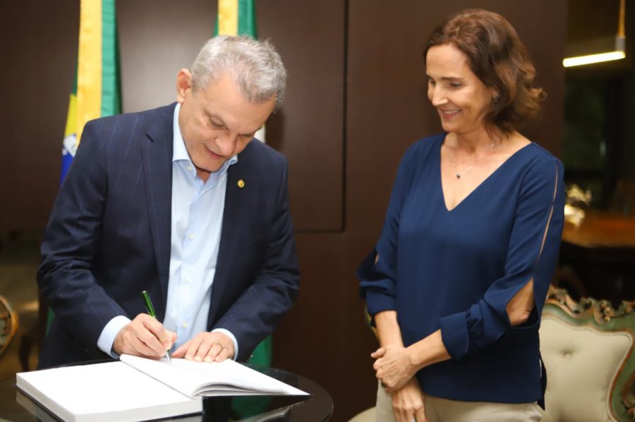 José Sarto e Izolda Cela durante cerimônia de transmissão de cargo.