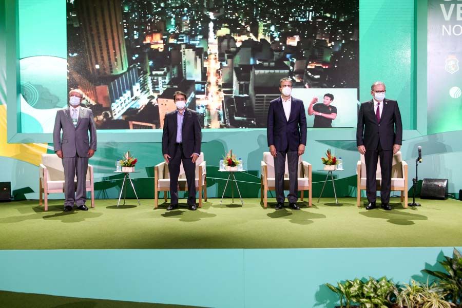 O Centro de Eventos do Ceará recebeu, nesta quinta-feira (14), o Seminário Internacional Hidrogênio Verde, que contou com palestrantes nacionais e internacionais tratando das vantagens econômicas e climáticas da energia limpa para o futuro. O evento foi realizado pela Editora Globo, em parceria com o Governo do Ceará e contou com as participações do presidente da Fiec, Ricardo Cavalcante, do governador Camilo Santana, do reitor da UFC, Cândido Albuquerque, e do presidente da AL, Evandro Leitão, dentre outras autoridades.