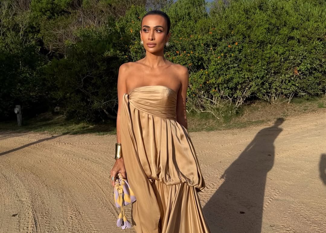A influenciadora de moda e luxo Silvia Braz fez uma pausa na agenda internacional para um momento especial em família. Ela desembarcou em Punta del Este, no Uruguai, onde atuou como madrinha no casamento do cunhado — irmão do empresário Rômolo Holsback — em uma cerimônia elegante. Para a celebração, Silvia apostou em um vestido dourado tomara que caia da coleção Verão 2026 da Zimmermann, com styling assinado por Pedro Sales. O visual foi finalizado com joias da Tiffany & Co., completando uma produção sofisticada que reflete a estética refinada associada à sua trajetória no universo fashion.