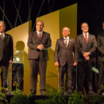 André Montenegro de Holanda, presidente do Sinduscon-CE, recebeu convidados ilustres nesta sexta (24), durante o Prêmio da Construção. Este ano a solenidade chega a sua 16ª edição e faz homenagem a nomes como do vice-presidente de Habitação da CEF, Nelson Antônio de Souza, na categoria Desenvolvimento Setorial, e o consultor de engenharia da Seinfra, Roberto Ribeiro, na categoria Resgate Histórico. O Prêmio Tecnologia e Qualidade foi entregue a Paulo de Tarso Menezes Felismino pela implantação do Software Informacon. O Secretário Estadual do Meio Ambiente, Artur Bruno, foi agraciado com o Prêmio Responsabilidade Social e Sustentabilidade. Na categoria Operário do Ano, o condecorado foi o bombeiro hidráulico Moisés Braga Maciel, da Placic. Na oportunidade, a C. Rolim Engenharia foi anunciada a “Construtora do Ano”, onde recebeu pelo segundo ano consecutivo o Troféu Waldyr Diogo de Siqueira.