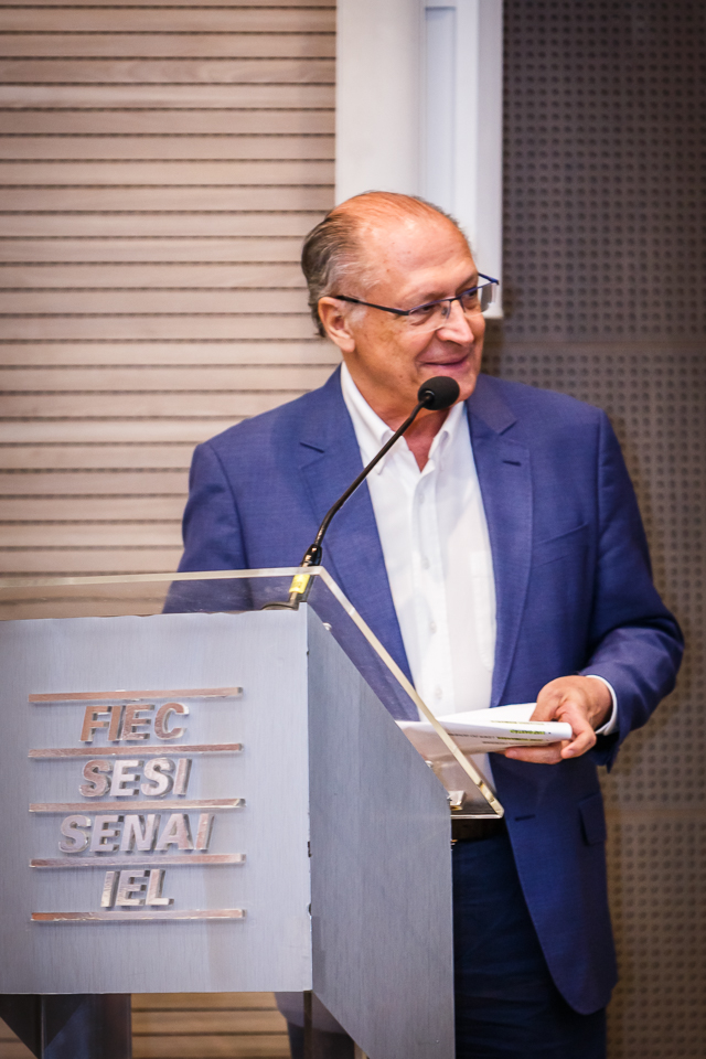 O vice-presidente da República e ministro do Desenvolvimento da Indústria, Comércio e Serviços, Geraldo Alckmin (PSB-SP), ministrou palestra nesta sexta-feira (29), na Federação das Indústrias do Estado do Ceará (Fiec). O ex-governador de São Paulo falou aos convidados sobre sua participação no Ministério, e dos desafios de alavancar a produção industrial e o comércio brasileirona atual conjuntura do País. O evento ocorreu na no auditório Waldyr Diogo, na Casa da Indústria.