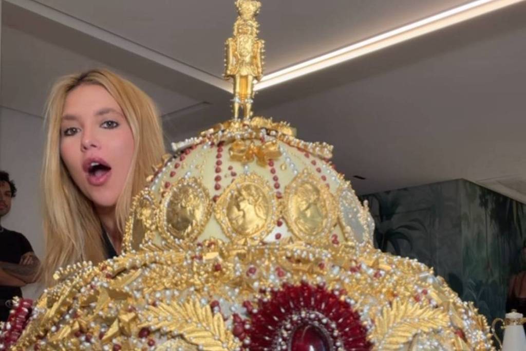 “Olha o tamanho disso aqui! O que será que tem aí dentro?”, disse a influenciadora digital ao receber uma grande caixa. Ao abrir, eis que surge um panetone gigante. Era, na verdade, um chocotone de 20 quilos, especialmente decorado para ela, lembrando uma joia. Foi um gentil oferecimento de um confeiteiro de São Paulo, que teve seu nome citado por ela para seus mais de 53 milhões de seguidores no Instagram.